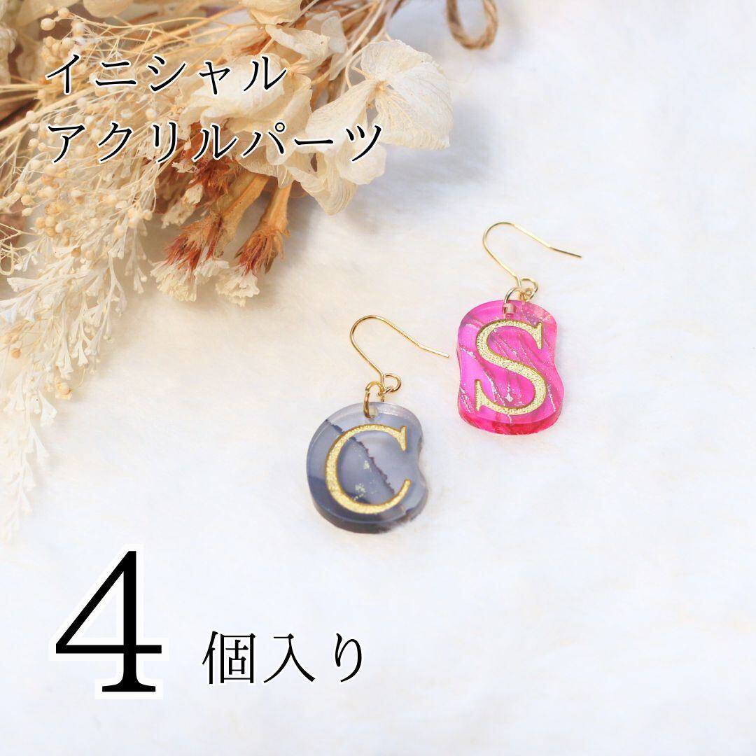 【穴あり・なし】イニシャルアクリルパーツ資材4個セット(商用利用可)