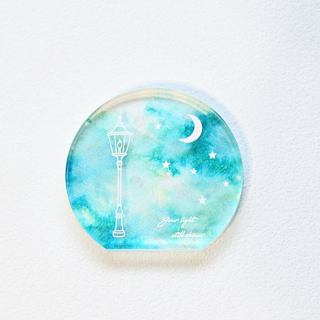 街灯と月のスノードーム風アクリル資材(商用利用可)
