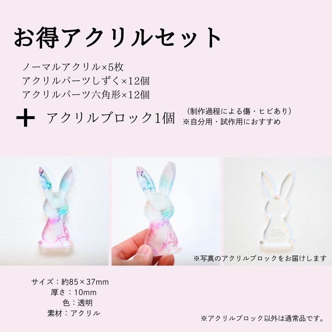 制作練習や試作など、自分用に気軽に使っていただけるお得なアクリルセットです。