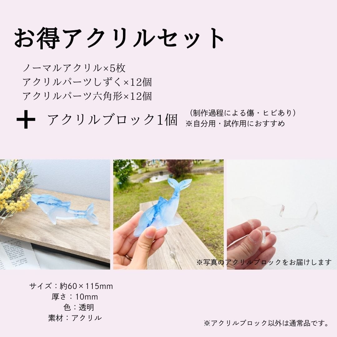 制作練習や試作など、自分用に気軽に使っていただけるお得なアクリルセットです。