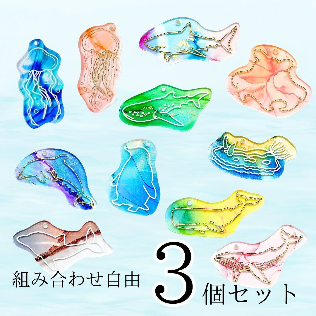 海の生き物シリーズアクリル資材3個セット(商用利用可)