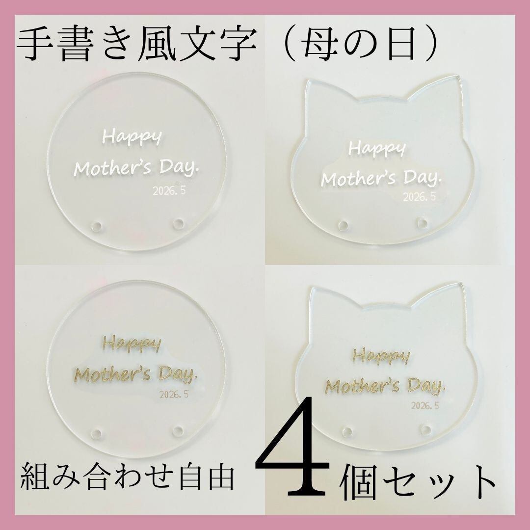 【手書き風】母の日アクリル資材4個セット(商用利用可)