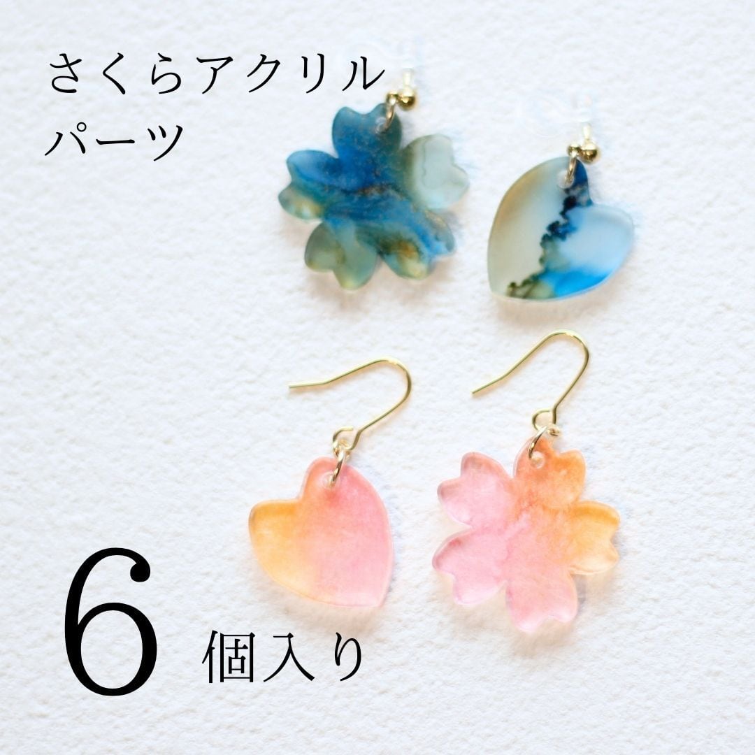 【穴あり・なし】さくらアクリルパーツ6個入り(商用利用可)