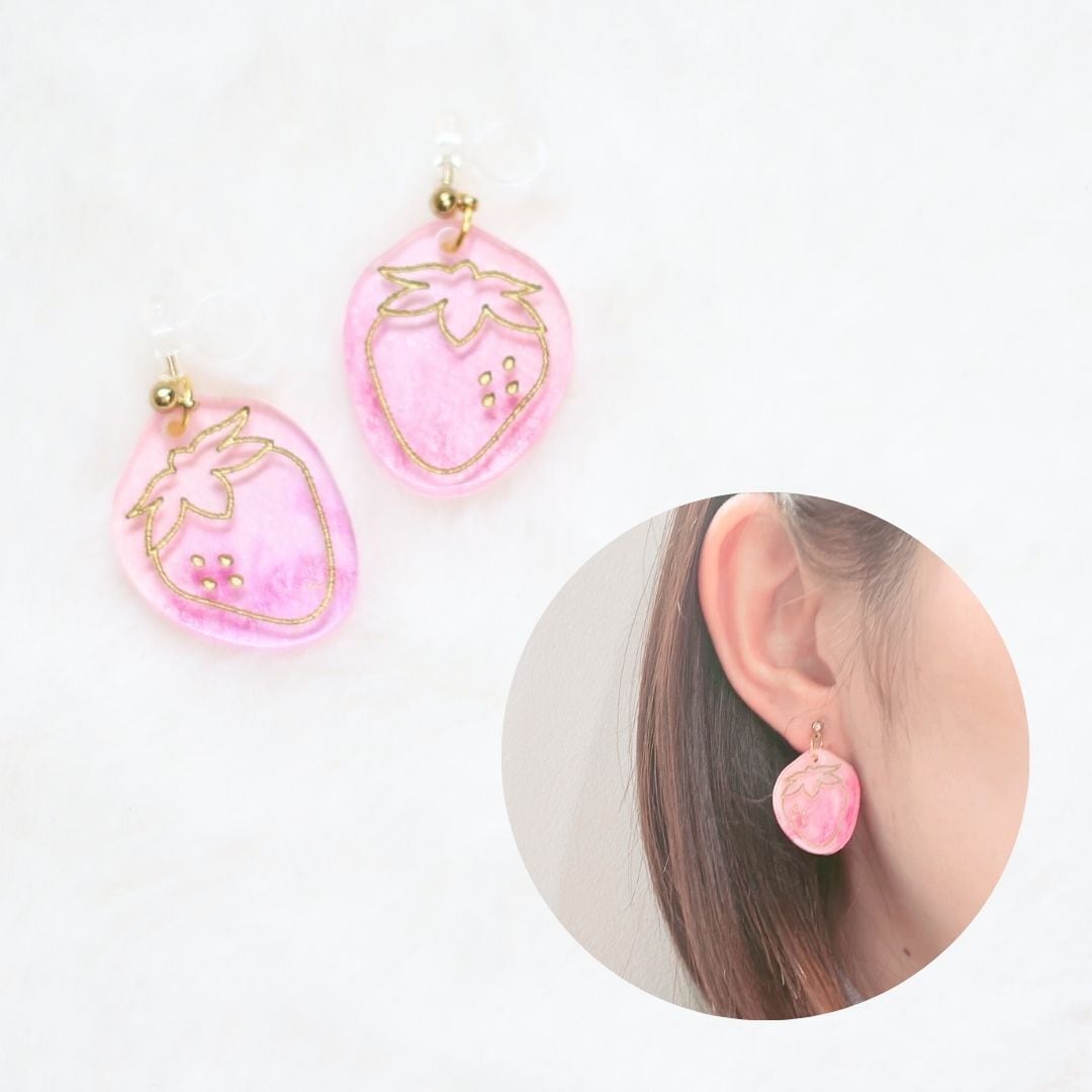 【穴あり・なし】いちごアクセサリーアクリルパーツ資材(商用利用可)